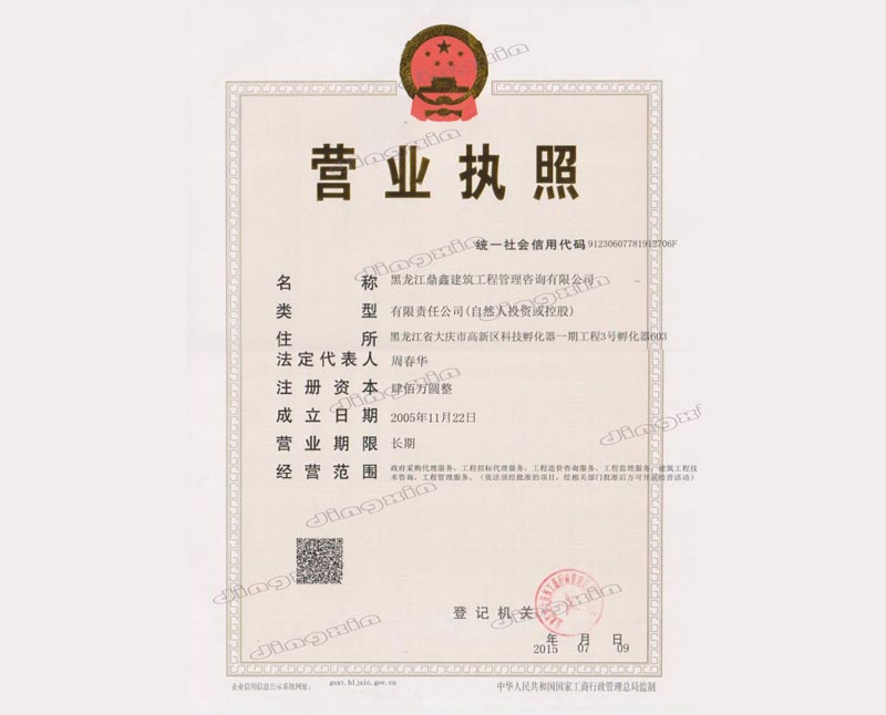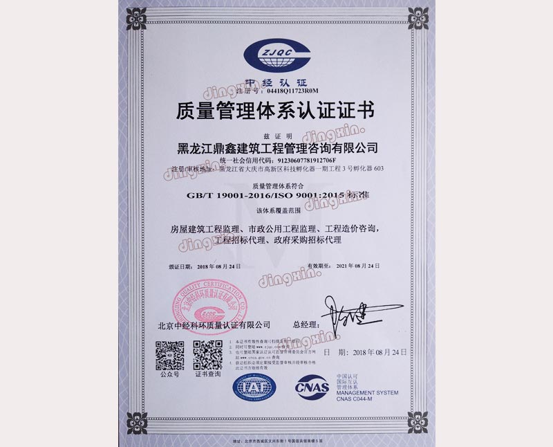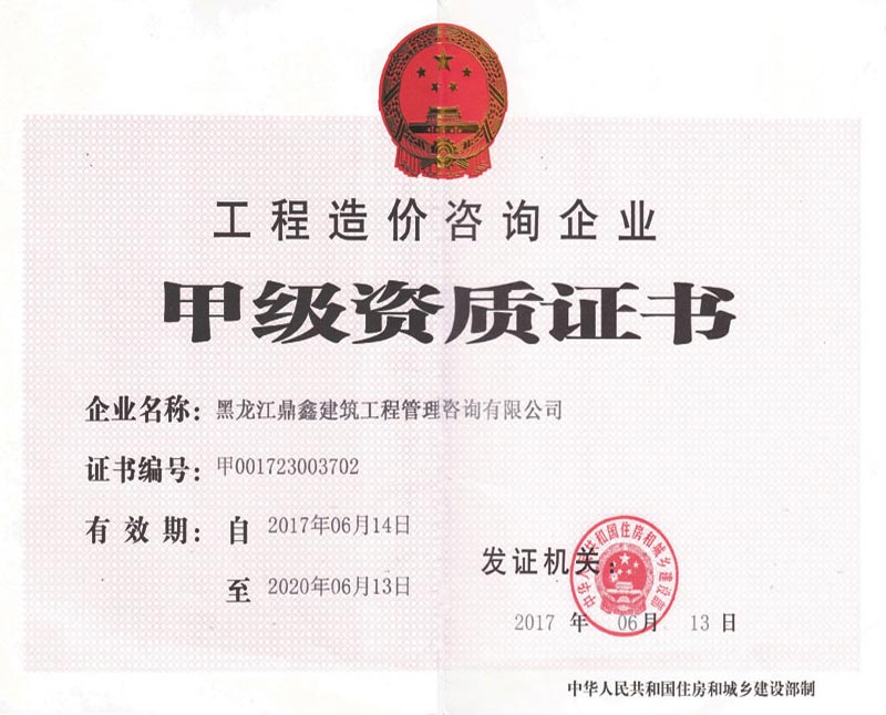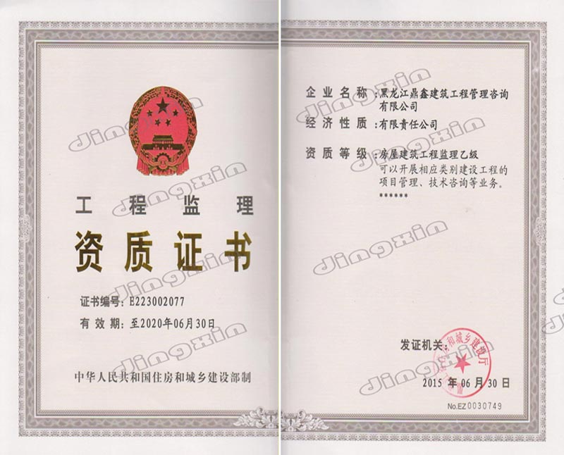 黑龍江鼎鑫建筑工程管理咨詢有限公司成立于2005年,注冊(cè)資金400萬元。具備中華人民共和國(guó)住房和城鄉(xiāng)建設(shè)部批準(zhǔn)的工程招標(biāo)代理機(jī)構(gòu)資格、中華人民共和國(guó)財(cái)政部批準(zhǔn)的政府采購(gòu)招標(biāo)代理機(jī)構(gòu)資格、黑龍江省商務(wù)廳批準(zhǔn)的機(jī)電產(chǎn)品國(guó)際招標(biāo)代理機(jī)構(gòu)資格、中華人民共和國(guó)住房和城鄉(xiāng)建設(shè)部批準(zhǔn)的工程造價(jià)咨詢甲級(jí)資質(zhì)、黑龍江省住房和城鄉(xiāng)建設(shè)廳批準(zhǔn)的房屋建筑工程監(jiān)理乙級(jí)(市政公用工程監(jiān)理乙級(jí)資質(zhì))。主要從事建設(shè)工程及政府采購(gòu)招標(biāo)、造價(jià)咨詢、工程監(jiān)理、項(xiàng)目管理等業(yè)務(wù)。